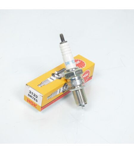 Bougie d'allumage NGK DR7ES neuve. Dimensions: - Culot diamètre: 12mm - Longueur filetée du culot: 19mm Le serrage se fait à l'aide d'une clé de 18. Cette bougie est équipée d'une électrode centrale en cuivre. Elle est particulièrement adaptée aux moteurs quatre temps. Vendue à l'unité. Livrée conforme à la photo. ...