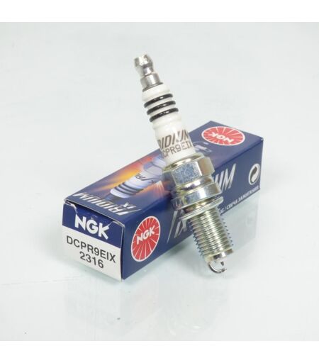 Bougie d'allumage NGK DCPR9EIX iridium neuve dimensions: - Culot diamètre: 12mm - Longueur filetée du culot: 19mm - Le démontage peut être effectué à l'aide d'une clé de 16mm. Cette bougie est équipée d'une électrode centrale en Iridium améliorant le rendement moteur. L'olive présente sur la bougie n'est pas démontable. Cette bougie est particulièrement adaptée aux moteurs quatre temps. Vendue à l'unité. Livrée conforme à la photo. ...