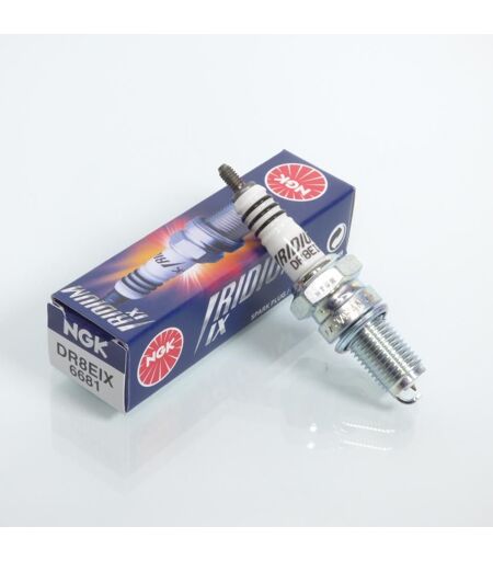 Bougie d'allumage iridium IX NGK DR8EIX neuve. Caractéristiques : - Type de bougie : Iridium IX - Type de connexion : Sans olive (Embout fileté) - Culot diamètre : 12mm - Longueur filetée du culot : 19mm - Hexagonal : 18mm Cette bougie est équipée d'une électrode centrale en iridium améliorant le rendement moteur. Vendue à l'unité. Livrée conforme à la photo. ...