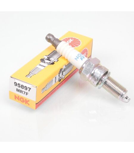 Bougie d'allumage NGK MR7F neuve. Dimensions : - Culot diamètre 10mm. - Longueur filetée du culot 19mm. Le démontage peut être effectué à l'aide d'une clé de 16mm. Cette bougie est équipée d'une électrode centrale en cuivre. Vendue à l'unité. Livrée conforme à la photo. ...