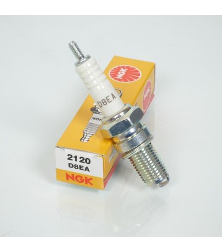 Bougie d'allumage NGK D8EA neuve. Caractéristiques : - Type de bougie : Standard - Type de connexion : Embout fileté (sans olive) - Culot diamètre : 12mm - Longueur filetée du culot : 19mm - Hexagonal : 18mm Cette bougie est équipée d'une électrode design spécial améliorant le rendement moteur. Elle est particulièrement adaptée aux moteurs quatre temps. Vendue à l'unité. Livrée conforme à la photo. ...