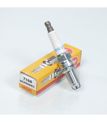 Bougie d'allumage NGK DCPR8EKC neuve. Caractéristiques : - Type de bougie : Standard - Type de connexion : Olive (fixe) - Culot diamètre : 12mm - Longueur filetée du culot : 19mm - Hexagonal : 16mm Vendue à l'unité. Livrée conforme à la photo. ...