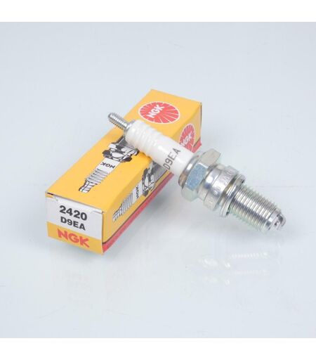 Bougie d'allumage NGK D9EA neuve. Dimensions : - Culot diamètre 12mm. - Longueur filetée du culot 19mm. Le démontage peut être effectué à l'aide d'une clé de 18mm. Cette bougie est équipée d'une électrode centrale en cuivre. Elle est particulièrement adaptée aux moteurs quatre temps. Vendue à l'unité. Livrée conforme à la photo. ...