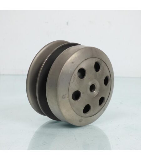 Bloc embrayage complet neuf pour scooter Chinois 50cm3 4 temps équipés d'un moteur type GY6. Ce kit embrayage comprend correcteur de couple, poulie, plateau et cloche d'embrayage. Dimensions : - Diamètre intérieur cloche d'embrayage : 107mm - Diamètre intérieur cannelures cloche d'embrayage : 11/12mm - Diamètre extérieur cloche d'embrayage : 114.5mm - Diamètre extérieur correcteur de couple : 118.5mm - Diamètre intérieur (axe) coté correcteur de couple : 17mm - Diamètre intérieur (axe) coté plateau d'embrayage : 12/21.8mm Vendu à l'unité. Livré conforme à la photo. ...