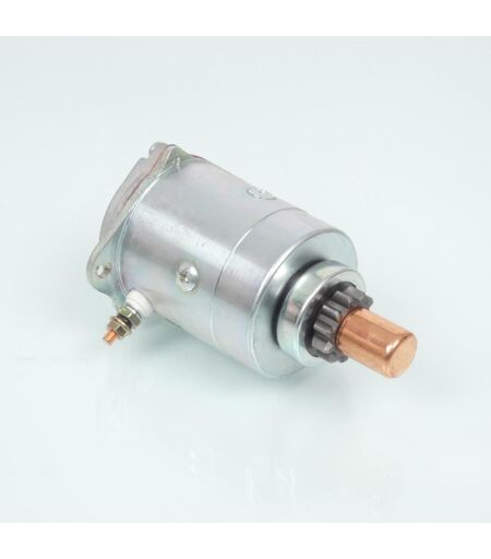 Démarreur électrique 12V neuf. Dimensions : - Diamètre d'emboîtement (partie couleur chrome): 41mm. - Diamètre d'arbre (partie couleur cuivre) : 19mm. - Longueur d'arbre : 45mm. - Nombre de dents : 11. - Longueur total du démarreur : 138mm environ. - Diamètre des trous de fixation : 6mm. - Entraxe des trous de fixation : 78mm environ. Pour le remplacement de la référence d'origine Piaggio 179116. Merci de vérifier que le vôtre soit identique. Livré conforme aux photos. ...