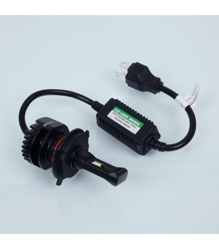 Kit conversion ampoule LED H4 avec ballast 12V 16W blanche neuf. Pour une utilisation en feux de croisement (code) et phare. Caractéristiques : - Type : H4 LED avec ballast. - Tension : DC 9-33V. - Puissance : 16W. - Luminosité : 2200 Lumens. - Diamètre de la collerette : 37.7/43.2mm. - Diamètre au niveau des LED : 17.5mm. - Diamètre au niveau du refroidisseur : 40.6mm. - Longueur totale de l'ampoule : 82.4mm. - Durée de vie : 30000 heures. - Connecteur 3 broches. - Consommation électrique très faible. Produit non homologué, interdit sur la voie publique. Vendue à l'unité. Livrée conforme à la photo. ...