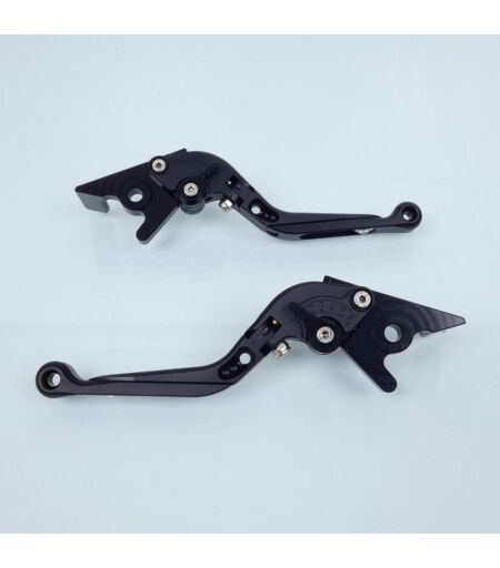 Leviers de frein avant et d'embrayage articulés neufs de marque Sifam, en aluminium coloris noir. Caractéristiques : - Fabriqués en aluminium T6066 CNC taillé dans la masse et anodisé. - Réglage d'angle d'ouverture (6 positions). - Réglage de la longueur (version 3 doigts extensible sur +/- 30mm). - Articulation du levier : repliable en cas de chute. - Personnalisation couleur possible, kit embouts + molettes (vendu séparément). Vendus par paire. Livrés conformes à la photo. ...