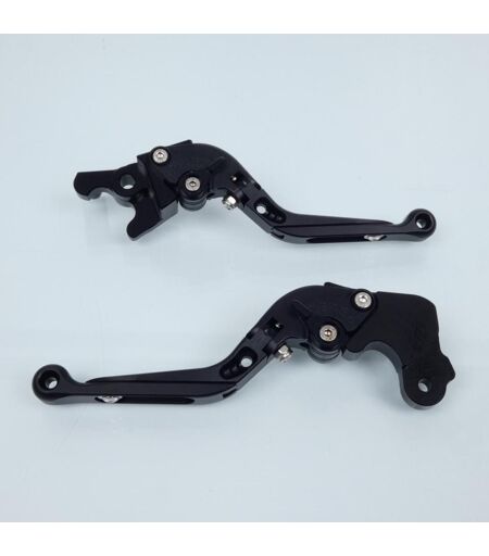 Leviers de frein avant et d'embrayage articulés neufs de marque Sifam, en aluminium coloris noir. Caractéristiques : - Fabriqués en aluminium T6066 CNC taillé dans la masse et anodisé. - Réglage d'angle d'ouverture (6 positions). - Réglage de la longueur (version 3 doigts extensible sur +/- 30mm). - Articulation du levier : repliable en cas de chute. - Personnalisation couleur possible, kit embouts + molettes (vendu séparément). Vendus par paire. Livrés conformes à la photo ...
