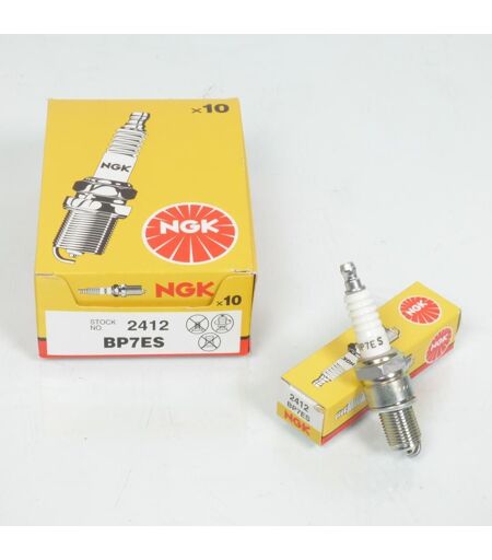 Bougie d'allumage NGK BP7ES neuve. Dimensions: - Culot diamètre: 14mm - Longueur filetée du culot: 19mm - Hexagonal: 21mm Cette bougie est équipée d'une électrode centrale en cuivre et est particulièrement adaptée aux moteurs deux temps. Vendues par boîte de 10. Livrées conforme à la photo. ...