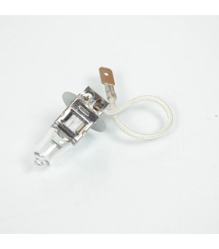 Ampoule H3 blanche 12V 55W neuve. Caractéristiques : - Tension : 12V - Puissance : 55W - Culot : PK22s - Type d'Ampoule : H3 - Couleur du Verre : Transparent - Diamètre de la collerette métallique : 22mm - Diamètre du verre : 10.5mm - Longueur totale de l'ampoule : 40mm Vendue à l'unité. Livrée conforme à la photo. ...