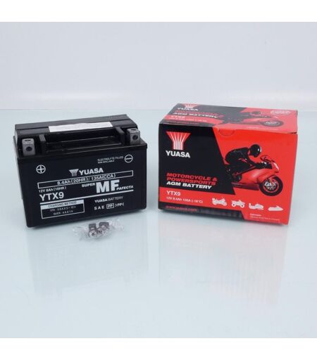 Batterie Yuasa au plomb type SLA AGM VRLA neuve sans entretien vendue prête à l'emploi référence YTX9. Caractéristiques : - Longueur : 150mm. - Largeur : 87mm. - Hauteur : 105mm. - Tension : 12V. - Capacité : 8.4Ah. - CCA : 135A. - Borne + à gauche. - Volume Acide: 0.4L. La batterie YUASA est très souvent utilisée en monte d'origine par les constructeurs. Elle est reconnue pour sa qualité et sa durée de vie exceptionnelle. Choisir Yuasa, c'est opter pour la tranquillité. Cette batterie sans entretien est livrée « prête à l?emploi », activée et chargée en usine (SLA). Aucune manipulation dangereuse n'est à effectuer. Technologie AGM «Absorbed Glass Mat» : l?électrolyte se trouvant dans la batterie étanche est absorbé ou stabilisé à l?intérieur par des buvards en fibre de verre. La batterie pourra être placée en position inclinée. Vendue à l'unité. Livrée conforme à la photo. ...