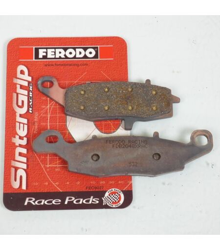Plaquette de frein organiques neuve de marque FERODO qualité Sinter Racing Compétition (XRAC). Dimensions plaquette 1 : - Longueur : 133.5mm - Largeur : 37.4mm - Épaisseur : 8.3mm Dimensions plaquette 2 : - Longueur : 109.2mm - Largeur : 44.4mm - Épaisseur : 8.3mm Ces plaquettes sont utilisées dans les courses de haut niveau depuis plusieurs années. Les matériaux ont été formulés pour un freinage agressif et instantané avec des niveaux de frottement élevés et constants dans une gamme de températures, de vitesses et de conditions de fonctionnement. Le concept unique de refroidissement de réseau (AC) signifie également que les plaquettes fonctionnent à des températures plus basses que les plaquettes conventionnelles. Cela permet de maintenir le liquide de frein à une température inférieure, évite les coulures et prolonge encore la durée de vie des plaquettes. caractéristiques principales : - Freinage agressif ...
