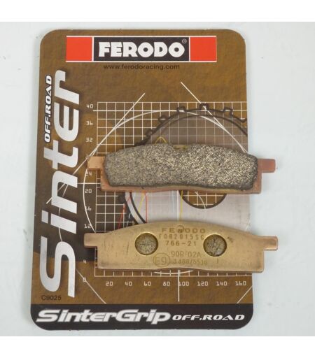 Plaquette de frein organiques neuves de marque FERODO qualité Sinter Grip Off Road (SG). Dimensions : - Longueur : 82.6mm - Largeur : 22mm - Épaisseur : 7.2mm Caractéristiques principales: - Composé fritté tout particulièrement destiné à une utilisation Off-road et convenant aux conditions sèches et boueuses. - Excellentes performances et stabilité dans toute la plage de température - Conçu pour fonctionner également avec la présence de particules abrasives provenant de conditions boueuses - Durée de vie exceptionnelle même dans des conditions boueuses - Convient uniquement aux disques en acier inoxydable Vendues par paire. Livrées conformes à la photo. ...