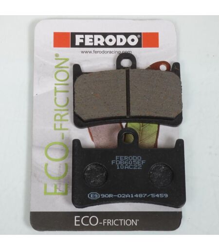 Paire de plaquettes de frein organique route neuve de marque FERODO ECO-Friction EF. Dimensions: - Longueur : 68.9mm. - Largeur : 50.8mm. - Épaisseur : 8.8mm. FERODO ECO-Friction EF : niveau de friction moyen-élevé et constant, procurant un excellent contrôle et une excellente performance de freinage. Caractéristiques principales : - Rapport qualité / prix exceptionnel. - Excellente durée de vie sans provoquer une usure élevée du disque. - Convient aux disques de frein inox et fonte. - Bonne performance en conditions humides. - Compatible avec les systèmes ABS. Vendues par paire. Livrées conformes à la photo. ...
