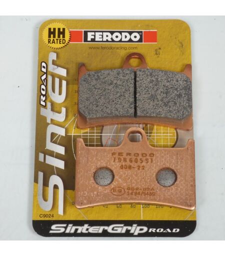 Plaquette de frein Métal fritté neuve de marque FERODO qualité Sinter Grip Road (ST). Dimensions : - Longueur : 68.9mm - Largeur : 50.8mm - Épaisseur : 8.8mm Caractéristiques principales: - Composé de métal fritté présentant les performances de morsure et de freinage les plus élevées de tous les matériaux de la gamme des plaquettes de route FERODO. - Coefficient de frottement le plus élevé (µ) dans la plage des plaquettes route - Indice de frottement le plus élevé possible - Fonctionne aussi bien dans des conditions humides que sèches - Convient uniquement aux disques en acier inoxydable - Convient pour une utilisation avec les systèmes ABS Vendues par paire. Livrées conformes à la photo. ...