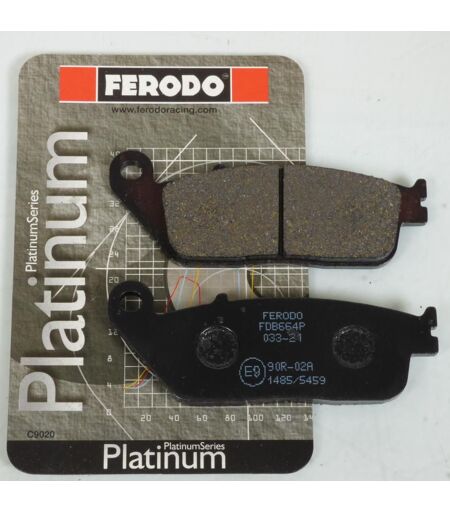 Plaquette de frein organiques neuve de marque FERODO qualité Platinium Road (P). Dimensions : - Longueur : 102.1mm - Largeur : 39.1mm - Épaisseur : 9.8mm Caractéristiques principales: -Matériau le plus utilisé en premier monte -Non agressif, respectueux du disque de frein -Adapté au disque en acier et fonte -Meilleur qualité prix -Freinage avec des performances identiques dans les conditions humides et sèches -Support métallique zingué pour réduire la corrosion. Vendues par paire. Livrées conformes à la photo. ...