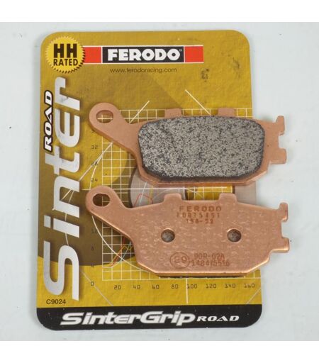 Plaquette de frein Métal fritté neuve de marque FERODO qualité Sinter Grip Road (ST). Dimensions : - Longueur : 86.1mm - Largeur : 40.2mm - Épaisseur : 9.3mm Caractéristiques principales: - Composé de métal fritté présentant les performances de morsure et de freinage les plus élevées de tous les matériaux de la gamme des plaquettes de route FERODO. - Coefficient de frottement le plus élevé (µ) dans la plage des plaquettes route - Indice de frottement le plus élevé possible - Fonctionne aussi bien dans des conditions humides que sèches - Convient uniquement aux disques en acier inoxydable - Convient pour une utilisation avec les systèmes ABS Vendues par paire. Livrées conformes à la photo. ...