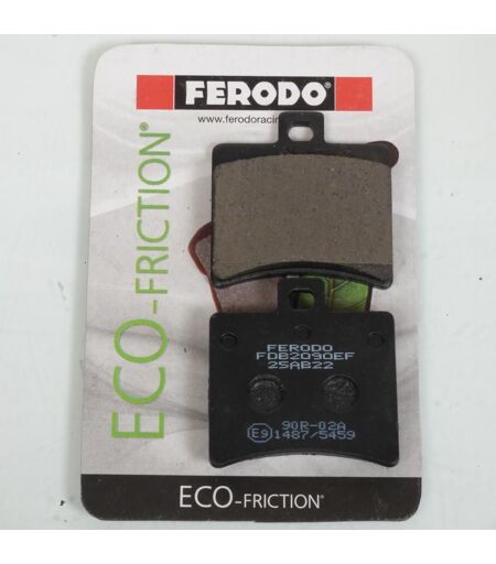 Plaquette de frein organiques neuve de marque FERODO qualité ECO-Friction (EF). Dimensions : - Longueur : 50.6mm - Largeur : 53.4mm - Épaisseur : 9.4mm Caractéristiques principales: - Rapport qualité / prix exceptionnel - Excellente durée de vie sans provoquer une usure élevée du disque - Convient aux disques de frein inox et fonte - Bonne performance en conditions humides - Compatible avec les systèmes ABS Vendues par paire. Livrées conformes à la photo. ...