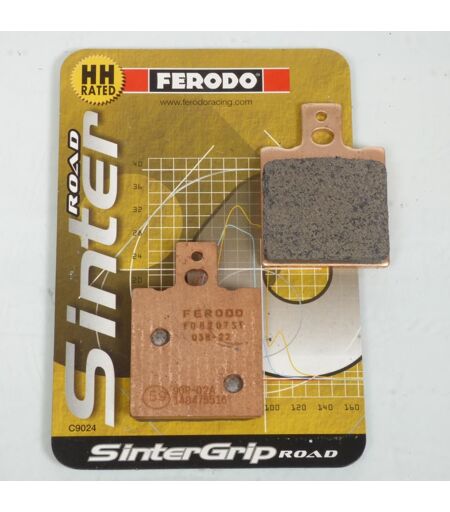 Plaquette de frein Métal fritté neuve de marque FERODO qualité Sinter Grip Road (ST). Dimensions : - Longueur : 39.6mm - Largeur : 56.2mm - Épaisseur : 9.5mm Caractéristiques principales: - Composé de métal fritté présentant les performances de morsure et de freinage les plus élevées de tous les matériaux de la gamme des plaquettes de route FERODO. - Coefficient de frottement le plus élevé (µ) dans la plage des plaquettes route - Indice de frottement le plus élevé possible - Fonctionne aussi bien dans des conditions humides que sèches - Convient uniquement aux disques en acier inoxydable - Convient pour une utilisation avec les systèmes ABS Vendues par paire. Livrées conformes à la photo. ...