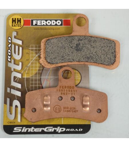 Plaquette de frein Métal fritté neuve de marque FERODO qualité Sinter Grip Road (ST). Dimensions : - Longueur : 90.8mm - Largeur : 62.2mm - Épaisseur : 8.2mm Caractéristiques principales: - Composé de métal fritté présentant les performances de morsure et de freinage les plus élevées de tous les matériaux de la gamme des plaquettes de route FERODO. - Coefficient de frottement le plus élevé (µ) dans la plage des plaquettes route - Indice de frottement le plus élevé possible - Fonctionne aussi bien dans des conditions humides que sèches - Convient uniquement aux disques en acier inoxydable - Convient pour une utilisation avec les systèmes ABS Vendues par paire. Livrées conformes à la photo. ...