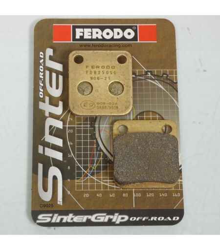 Plaquette de frein organiques neuves de marque FERODO qualité Sinter Grip Off Road (SG). Dimensions : - Longueur : 41.1mm - Largeur : 45mm - Épaisseur : 8mm Caractéristiques principales: - Composé fritté tout particulièrement destiné à une utilisation Off-road et convenant aux conditions sèches et boueuses. - Excellentes performances et stabilité dans toute la plage de température - Conçu pour fonctionner également avec la présence de particules abrasives provenant de conditions boueuses - Durée de vie exceptionnelle même dans des conditions boueuses - Convient uniquement aux disques en acier inoxydable Vendues par paire. Livrées conformes à la photo. ...
