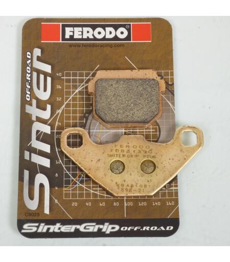 Plaquette de frein organiques neuves de marque FERODO qualité Sinter Grip Off Road (SG). Dimensions plaquette 1 : - Longueur : 84.9mm - Largeur : 42.4mm - Épaisseur : 7mm Dimensions plaquette 2 : - Longueur : 47.4mm - Largeur : 37mm - Épaisseur : 9mm Caractéristiques principales: - Composé fritté tout particulièrement destiné à une utilisation Off-road et convenant aux conditions sèches et boueuses. - Excellentes performances et stabilité dans toute la plage de température - Conçu pour fonctionner également avec la présence de particules abrasives provenant de conditions boueuses - Durée de vie exceptionnelle même dans des conditions boueuses - Convient uniquement aux disques en acier inoxydable Vendues par paire. Livrées conformes à la photo. ...