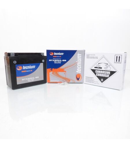Batterie Tecnium acide conventionnelle au plomb neuve sans entretien vendue avec acide référence YTX20HL-BS. Caractéristiques: - Longueur: 175mm - Largeur: 87mm - Hauteur: 155mm - Tension: 12V - Capacité: 18Ah - CCA: 180A - Bornes + à droite - Volume acide: 0.93L Les batteries conventionnelles TECNIUM livrées avec pack acide doivent être remplies avant leur première utilisation. - Installation en position droite uniquement - Technologie acide-plomb, chargée à sec - Produit retardant la sulfatation - A manipuler avec précaution (acide) - Durée de vie normale Vendue à l unité. Livrée conforme à la photo. ...