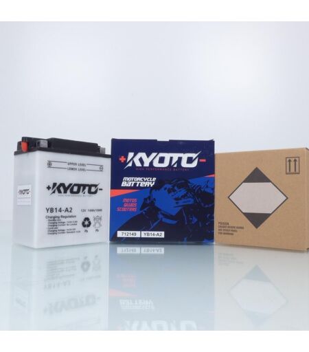 Batterie Kyoto acide conventionnelle au plomb neuve avec entretien vendue avec acide référence YB14-A2. Caractéristiques: - Longueur: 135mm - Largeur: 91mm - Hauteur: 167mm - Tension: 12V - Capacité: 14Ah - CCA: 190A - Bornes + à gauche - Volume acide: 0.87L Cette batterie offre un excellent rapport Qualité/Prix. Elle est facile à mettre en place. Une notice d'utilisation est fournie. Vendue à l'unité. Livrée conforme à la photo. ...