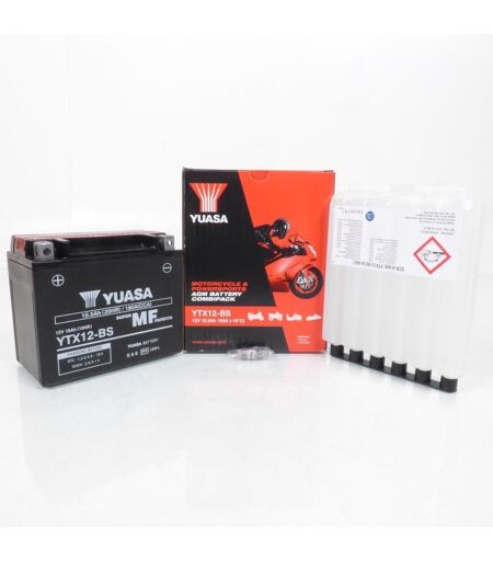 Batterie Yuasa acide conventionnelle au plomb neuve sans entretien vendue avec acide référence YTX12-BS. Caractéristiques: - Longueur: 150mm - Largeur: 87mm - Hauteur: 131mm - Tension: 12V - Capacité: 10Ah - CCA: 180A - Bornes + à gauche - Volume acide: 0.6L La batterie YUASA est très souvent utilisée en monte d'origine par les constructeurs. Elle est reconnue pour sa qualité et sa durée de vie exceptionnelle. Choisir Yuasa, c'est opter pour la tranquillité. Vendue à l'unité. Livrée conforme à la photo. ...