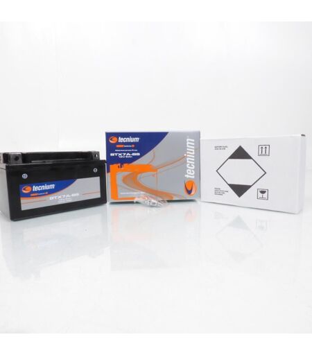 Batterie Tecnium acide conventionnelle au plomb neuve sans entretien vendue avec acide référence YTX7A-BS. Caractéristiques: - Longueur: 150mm - Largeur: 87mm - Hauteur: 94mm - Tension: 12V - Capacité: 6Ah - CCA: 105A - Bornes + à gauche - Volume acide: 0.39L Les batteries conventionnelles TECNIUM livrées avec pack acide doivent être remplies avant leur première utilisation. - Installation en position droite uniquement - Technologie acide-plomb, chargée à sec - Produit retardant la sulfatation - A manipuler avec précaution (acide) - Durée de vie normale Vendue à l unité. Livrée conforme à la photo. ...