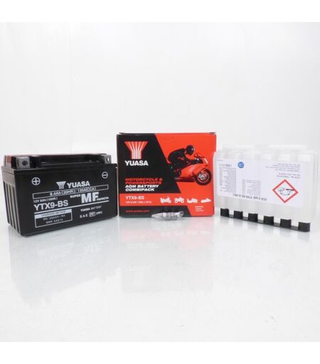 Batterie Yuasa acide conventionnelle au plomb neuve sans entretien vendue avec acide référence YTX9-BS. Caractéristiques: - Longueur: 150mm - Largeur: 87mm - Hauteur: 105mm - Tension: 12V - Capacité: 8Ah - CCA: 135A - Bornes + à gauche - Volume acide: 0.45L La batterie YUASA est très souvent utilisée en monte d'origine par les constructeurs. Elle est reconnue pour sa qualité et sa durée de vie exceptionnelle. Choisir Yuasa, c'est opter pour la tranquillité. Vendue à l'unité. Livrée conforme à la photo. ...