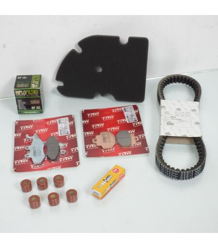 Kit révision entretien neuf de marque Sceed42. Ce kit comprend: - Bougie d'allumage NGK CR8EKB - Filtre a air Cif 11772 - Filtre à huile Hiflofiltro HF183 - Galet rouleau de variateur origine 849480 (21x17mm x 13grs) - Courroie de transmission origine 82941R - Plaquette de frein avant TRW MCB744EC - Plaquette de frein arrière TRW MCB727SRM Ce kit révision permet d'effectuer la révision standard du scooter. Il contient uniquement ce qui est visible sur la photo. Livre conforme a la photo. ...