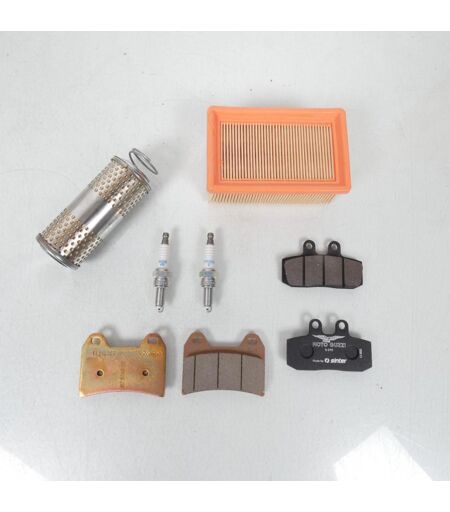 Un kit révision entretien neuf de marque Sceed42 comprenant : - Un filtre à huile origine MOTO GUZZI référence "2A000633". - Un filtre à air origine référence "AP8104924". - Deux bougies d'allumage NGK référence "CPR8EB-9". - Une paire de plaquette de frein avant BREMBO origine MOTO GUZZI référence "883673". - Une paire de plaquette de frein arrière origine MOTO GUZZI référence "2R000248". Ce kit permet d'effectuer la révision standard du scooter. Il contient uniquement ce qui est visible sur la photo. Vendu le kit à l'unité. Livré conforme a la photo. ...