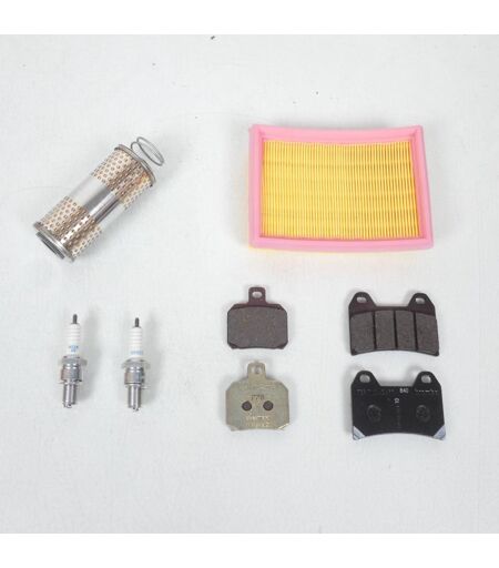 Un kit révision entretien neuf de marque Sceed42 comprenant : - Un filtre à huile origine MOTO GUZZI référence "2A000633". - Un filtre à air origine référence "AP8104242". - Deux bougies d'allumage NGK référence "BR8ES". - Une paire de plaquette de frein avant BREMBO origine MOTO GUZZI référence "GU01654630". - Une paire de plaquette de frein arrière BREMBO origine MOTO GUZZI référence "GU31654681". Ce kit permet d'effectuer la révision standard du scooter. Il contient uniquement ce qui est visible sur la photo. Vendu le kit à l'unité. Livré conforme a la photo. ...