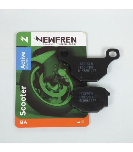 Paire de plaquette de frein organique neuve de marque Newfren type BA Active organic scooter. Dimensions : - Longueur : 88mm - Hauteur : 49mm - Épaisseur : 7.8mm - Longueur 2 : 56mm - Hauteur 2 : 36mm - Épaisseur 2 : 10.2mm Plaquette étudiée pour les scooters et l'utilisation en ville, où les couts de gestion et la durée sont le besoins primaires. BA est un mélange organique et il garantit haute fiabilité et sécurité. Vendues par paire. Livrées conforme à la photo. ...