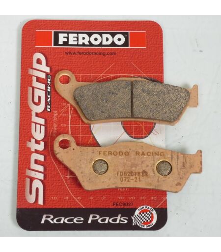 Plaquette de frein métal fritté neuve de marque FERODO qualité Sinter Grip Race Pad (ZR). Dimensions : - Longueur : 94mm - Largeur : 36.2mm - Épaisseur : 8mm Caractéristiques principales: - Composé fritté destiné à une utilisation Off road sur des étriers avant - Fonctionne dans toutes les conditions - Performances et mordant en Off road, tout en offrant un contrôle exceptionnel sur toute la plage de température - Conçu pour maintenir des performances optimales même en présence de particules abrasives présentes dans la boue - Durée de vie exceptionnelle dans les zones sèches, humides et la boue - Convient uniquement aux disques en acier inoxydable Vendues par paire. Livrées conformes à la photo. ...