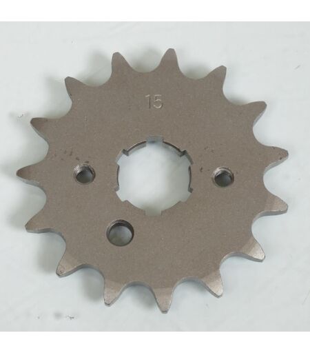Pignon de sortie de boîte 15 dents en acier neuf de marque SIFAM. Caractéristiques: - Nombre de dents: 15 dents - Pas: 520 - Diamètre intérieur cannelure: 21mm - Diamètre extérieur cannelures: 25mm - Nombre de cannelures: 6 - Largeur cannelures: 5mm - Fixation par deux trous M6 entre axe 42mm - Épaisseur au niveau de la chaine: 6mm - Épaisseur au niveau des cannelures: 6mm - Déport: Non - Trou pour le capteur de vitesse: Oui Vendu à l'unité. Livré conforme à la photo. ...