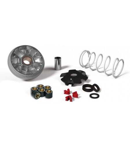 Variateur scooter neuf de marque Malossi, modèle Multivar. Le kit Multivar comprend : - Une joue mobile de variateur. - Trois entretoises. - Un plateau d'appui avec ses trois guides. - Six galets 7g dimensions 16x13mm. - Un canon de variateur dimensions 13x20x37mm. - Un ressort de poussée blanc 3.5k dimensions 53.1x110mm (diamètre du fil 3.6mm). Le variateur Malossi Multivar offre un fonctionnement doux et progressif, ainsi qu'un rendement élevé à la transmission de votre scooter. Le montage et le réglage sont très simples. Tout ce qui est fourni est visible sur la photo. Vendu à l'unité. Livré conforme à la photo. ...
