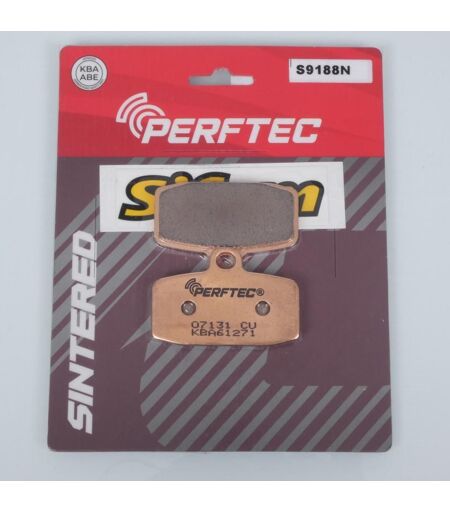 Plaquettes de frein métal fritté sport neuves. Dimensions : - Longueur : 59mm. - Largeur : 40.2mm. - Épaisseur : 7.5mm. 100% des plaquettes Perftec sont de qualité "SINTERED METAL". Elles conviennent parfaitement aux motos puissantes. Performances de freinage stables et accrues pour les freins avant et arrière. Haut niveau de confort, longue durée de vie dans diverses conditions telles que les routes humides, les changements de températures. Conformes à la norme KBA/ABE : les matériaux de friction répondent aux critères les plus stricts selon les normes Européennes. Vendues par paire. Livrées conformes à la photo. ...