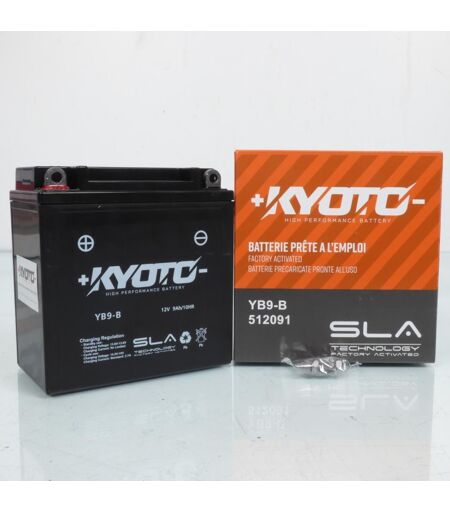 Batterie Kyoto au plomb type SLA neuve sans entretien vendue prête à l'emploi référence YB9B. Caractéristiques: - Longueur: 137mm - Largeur: 76mm - Hauteur: 140mm - Tension: 12V - Capacité: 9Ah - CCA: 120A - Borne + à gauche - Volume acide: 0.6L Cette batterie sans entretien est livrée « prête à l?emploi » et chargée en usine (SLA). Aucune manipulation dangereuse n'est à effectuer. De même technologie que les batteries AGM. AGM «Absorbed Glass Mat» signifie que l?électrolyse se trouvant dans la batterie étanche est absorbé ou stabilisé à l?intérieur par des buvards en fibre de verre.La batterie pourra être placée en position inclinée. Elle offre de plus un excellent rapport Qualité/Prix. Vendue à l'unité. Livrée conforme à la photo. ...