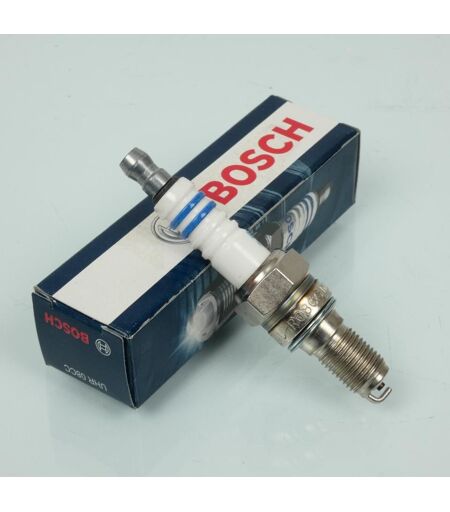 Bougie d'allumage Bosch UHR 08CC neuve. Caractéristiques : - Culot diamètre 10mm. - Longueur filetée du culot 12.7mm. - Le démontage peut être effectué à l'aide d'une clé de 16mm. - Olive démontable. L'électrode est préréglée à un écartement de 0.8mm. Vendue à l'unité. Livrée conforme à la photo. ...