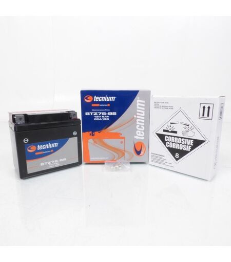 Batterie Tecnium acide conventionnelle au plomb neuve sans entretien vendue avec acide référence YTZ7S-BS. Caractéristiques: - Longueur: 114mm - Largeur: 70mm - Hauteur: 105mm - Tension: 12V - Capacité: 6Ah - CCA: 130A - Bornes + à droite - Volume acide: 0.28L Les batteries conventionnelles TECNIUM livrées avec pack acide doivent être remplies avant leur première utilisation. - Installation en position droite uniquement - Technologie acide-plomb, chargée à sec - Produit retardant la sulfatation - A manipuler avec précaution (acide) - Durée de vie normale Vendue à l unité. Livrée conforme à la photo. ...