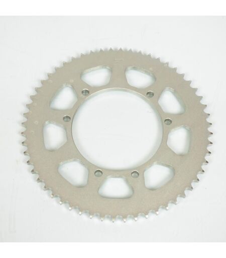 Couronne de transmission 56 dents au pas 428 neuve de marque Afam en acier coloris gris. Les couronnes acier AFAM sont usinées dans de l’acier type C45, puis traitées par trempage afin d’augmenter leur dureté, et ainsi leur longévité. La qualité d’usinage et la précision du taillage font d’AFAM une référence mondiale incontournable pour les éléments de transmission moto. - Couronne acier - Finition et qualité haut de gamme - Contribue à la longévité de votre kit chaine Dimensions: - Nombre de dents : 56 - Pas : 428 - Diamètre intérieur : 110mm - Épaisseur : 7.3mm - Nombre de trous : 6 - Diamètre des trous : 8.5mm - Entre axe des trous de fixation cote à cote les moins espacés : 42mm - Entre axe des trous de fixation cote à cote les plus espacés : 80mm - Déport : 0 Vendue nue à l'unité. Livrée conforme à la photo. ...