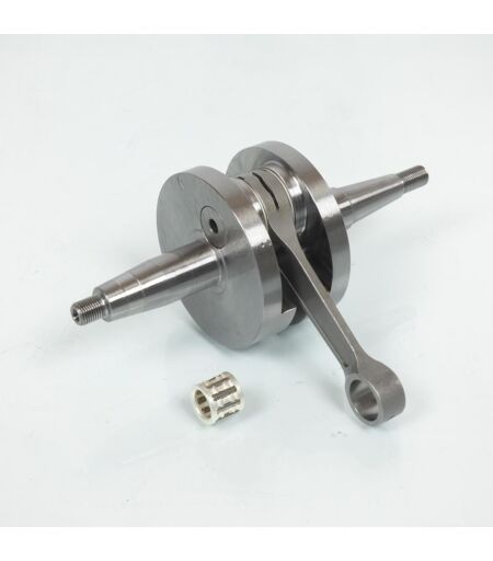 Vilebrequin d'embiellage neuf de marque Polini modèle 'FOR RACE' référence '210.0053'. Attention cage à aiguille d'axe de piston renforcée dimensions 12x17x15mm. Prévu pour moteur Derbi 50cc Euro 3 et Euro 4. Caractéristiques : - Diamètre intérieur du pied de bielle au niveau de l'axe de piston : 17mm - Largeur du pied de bielle au niveau de l'axe de piston : 12mm - Diamètre des masses de vilebrequin : 77mm - Largeur au niveau des masses de vilebrequin : 45mm - Diamètre des soies de vilebrequin au niveau des portées de roulement : 20mm - Filetage M10 Pas 1.0 standard (non inversé) coté variateur - Filetage M10 Pas 1.0 standard (non inversé) coté allumage - Longueur totale du vilebrequin : 180mm Toujours avec la même philosophie d’améliorer la qualité et la performance des pièces d’origine, les embiellages Polini 'FOR RACE' ont été développés pour augmenter les caractéristiques de résistance. La bielle a ...