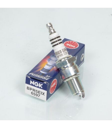 Bougie d'allumage NGK BPR5EIX Iridium IX neuve. Caractéristiques : - Type de bougie : Iridium IX - Type de connexion : Olive (amovible) - Culot diamètre : 14mm - Longueur filetée du culot : 19mm - Hexagonal : 21mm Les bougies Iridium IX possèdent une électrode centrale très fine en iridium ainsi qu’une électrode de masse biseautée : - Longévité plus importante (technologie anti-encrassement incorporée) - Meilleur allumage (concentration du potentiel électrique) - Consommation réduite Vendue à l'unité. Livrée conforme à la photo. ...