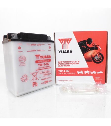 Batterie Yuasa acide conventionnelle au plomb neuve avec entretien vendue sans acide référence YB14-B2. Caractéristiques: - Longueur: 135mm - Largeur: 91mm - Hauteur: 167mm - Tension: 12V - Capacité: 14Ah - CCA: 175A - Bornes + à gauche - Volume acide: 0.8L La batterie YUASA est très souvent utilisée en monte d'origine par les constructeurs. Elle est reconnue pour sa qualité et sa durée de vie exceptionnelle. Choisir Yuasa, c'est opter pour la tranquillité. Vendue à l'unité. Livrée conforme à la photo. ...