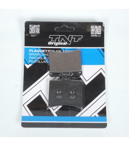Plaquette de frein organiques neuve de marque TNT. Dimensions : - Longueur : 51mm - Largeur : 54mm - Épaisseur : 9.4mm Vendues par paire. Livrées conformes à la photo. ...