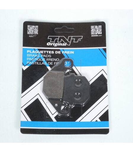 Plaquette de frein organiques neuve de marque TNT. Dimensions : - Longueur 1 : 84.9mm - Hauteur 1 : 42.4mm - Épaisseur 1 : 7mm - Longueur 2 : 47.4mm - Hauteur 2 : 37mm - Épaisseur 2 : 9mm Vendues par paire. Livrées conformes à la photo. ...