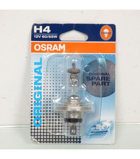 Ampoule halogène blanche H4 P43t 12V 60/55W neuve de marque OSRAM gamme Original. Caractéristiques : - Marque : OSRAM. - Gamme : Original (standard). - Type ampoule : H4. - Culot : P43t. - Tension : 12V. - Puissance : 60/55W. - Diamètre du culot : 22/43mm. - Diamètre du verre : 16mm. - Longueur totale de l'ampoule : 78mm. Vendue nue à l'unité. Livrée conforme à la photo. ...