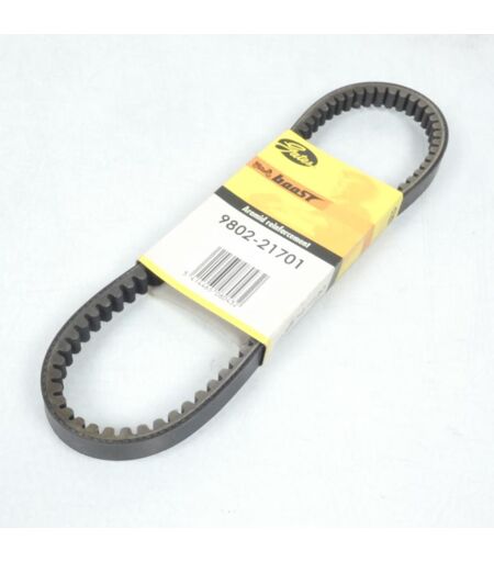 Courroie de transmission crantée 818x19x10 neuve de marque GATES gamme BOOST référence '9802-21701' en caoutchouc renforcé d'aramide. Les courroies GATES BOOST sont très résistantes et représentent par conséquent un investissement intelligent pour la performance et la fiabilité de votre véhicule de loisirs. BOOST : 'Une conduite sportive exige des pièces résistantes'. BOOST avec mélange en caoutchouc renforcé d'aramide afin d'améliorer la durabilité. Fabriquée suivant les normes de première monte et spécialement conçue pour les transmissions à vitesse variable, la courroie BOOST répond parfaitement aux besoins des véhicules actuels. Dimensions données : - Longueur : 818mm. - Largeur : 19mm. - Épaisseur : 10mm. Dimensions mesurées extérieures : - Longueur : 818mm. - Largeur : 18mm. - Épaisseur : 10mm. Vendue à l'unité. Livrée conforme à la photo. ...